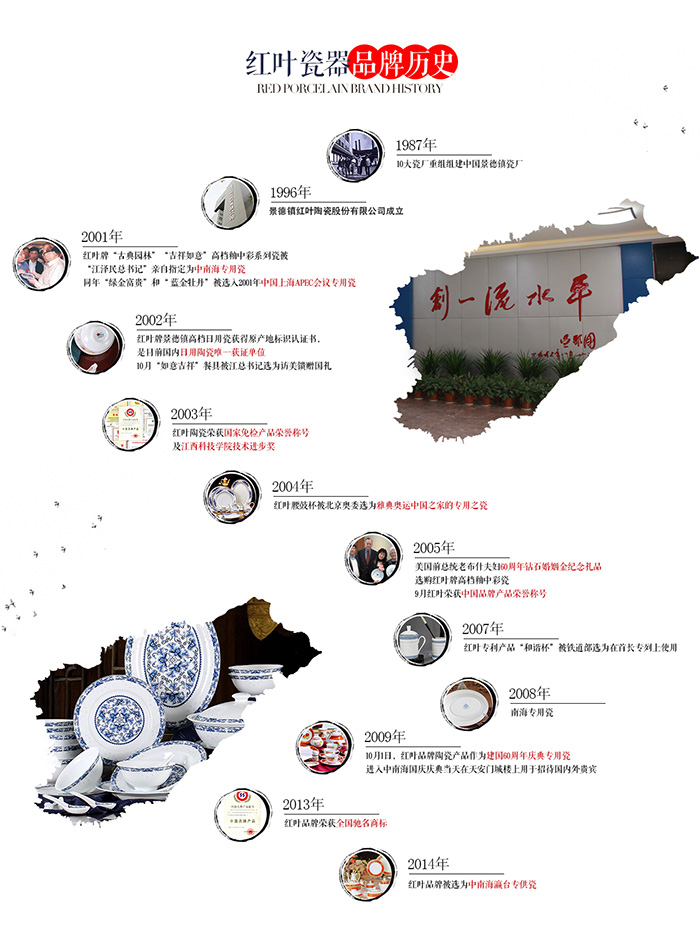 公司于2002年通過ISO9001:2000國際質(zhì)量體系認證,為拓展國際市場奠定基礎。"紅葉"牌高檔細瓷取得了國家質(zhì)量監(jiān)督檢驗檢疫總局頒發(fā)的原產(chǎn)地標記注冊證書。