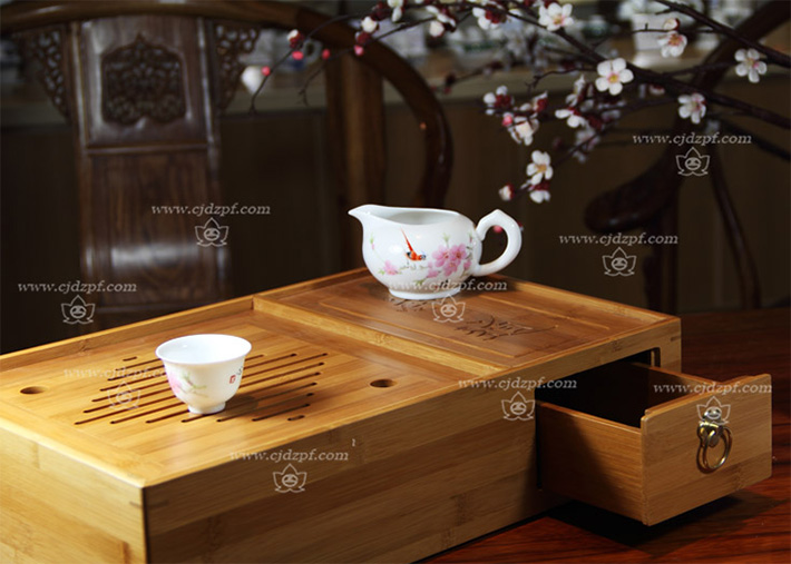 手繪功夫茶具(竹質(zhì)茶海)水點(diǎn)桃花