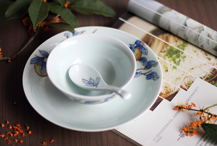 36頭青釉手繪中餐具--事事如意