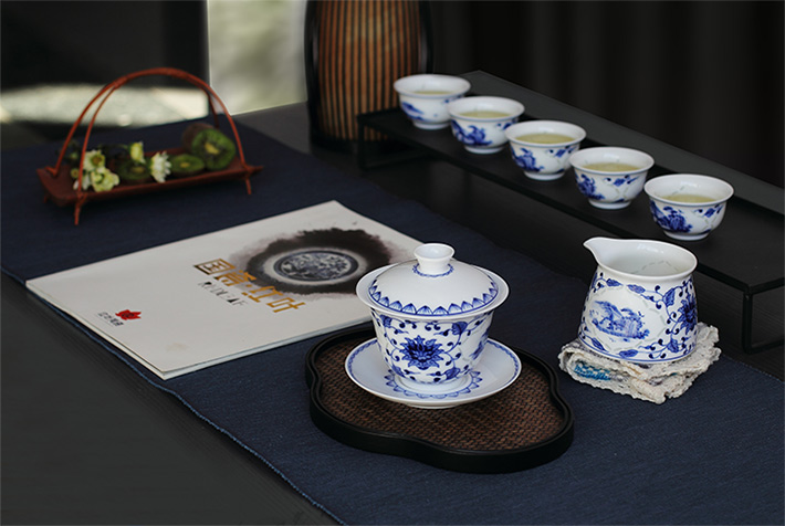 8頭玲瓏功夫茶具開堂山水蓋碗