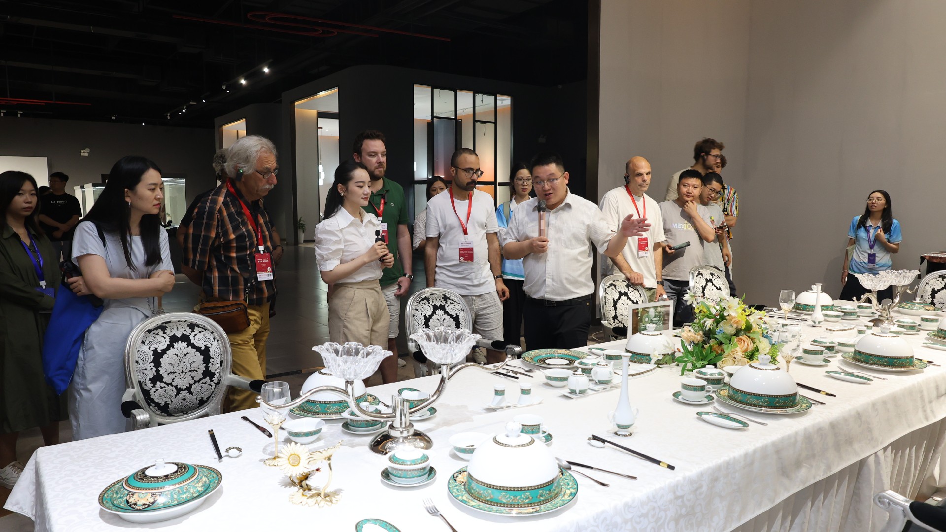 7月16日下午,參加2025年“一帶一路”記者組織論壇景德鎮(zhèn)線路主題采風(fēng)活動(dòng)的成員,走進(jìn)紅葉陶瓷國瓷館進(jìn)行參觀采訪。本次采風(fēng)以“瓷鏈?zhǔn)澜纭の拿骰ヨb——‘一帶一路’視角下的景德鎮(zhèn)陶瓷傳承與創(chuàng)新”為主題,由市委宣傳部(市政府新聞辦)、市新聞工作者協(xié)會、市融媒體中心聯(lián)合主辦。來自50多個(gè)國家和地區(qū)的記者組織負(fù)責(zé)人及媒體代表約58人參與了活動(dòng)。景德鎮(zhèn)陶瓷集團(tuán)黨委委員、副總經(jīng)理王小勤全程陪同講解。