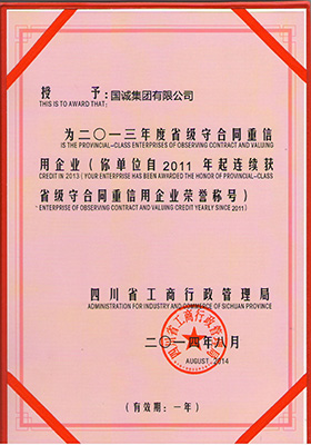 日前,經(jīng)廣泛征求有關(guān)部門和社會公眾的意見,按照嚴格程序規(guī)定考核,四川省工商行政管理局授予國誠集團有限公司2013年度省級“守合同重信用”企業(yè)稱號,并頒發(fā)“2013年度省屬守合同重信用企業(yè)”榮譽證書。