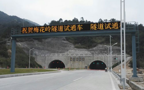 2015年12月15日,由國誠集團(tuán)有限公司承建的南官公路擴(kuò)建工程中的節(jié)點控制性工程—梅花嶺隧道正式開通試運行。本隧道屬于新建隧道,左洞長2110m,右洞長2086m,凈寬12.25m,總造價約3.2億元。自2012年10月15日開工以來,我方精心組織、合理安排,克服了圍巖地質(zhì)條件差、施工項目復(fù)雜等種種困難,穩(wěn)扎穩(wěn)打,逐步推進(jìn),實現(xiàn)了業(yè)主既定的節(jié)點目標(biāo),并且施工三年來未發(fā)生一例安全事故,受到了社會各界的好評。