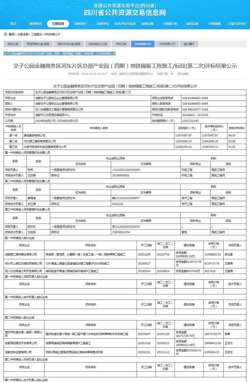 2024年8月23日公司參與投標成都交子公園悅云企業(yè)管理有限公司的“交子公園金融商務區(qū)河東片區(qū)總部產(chǎn)業(yè)園(四期)地鐵隔振工程施工標段(第二次)”,中標價:11975497.97元。