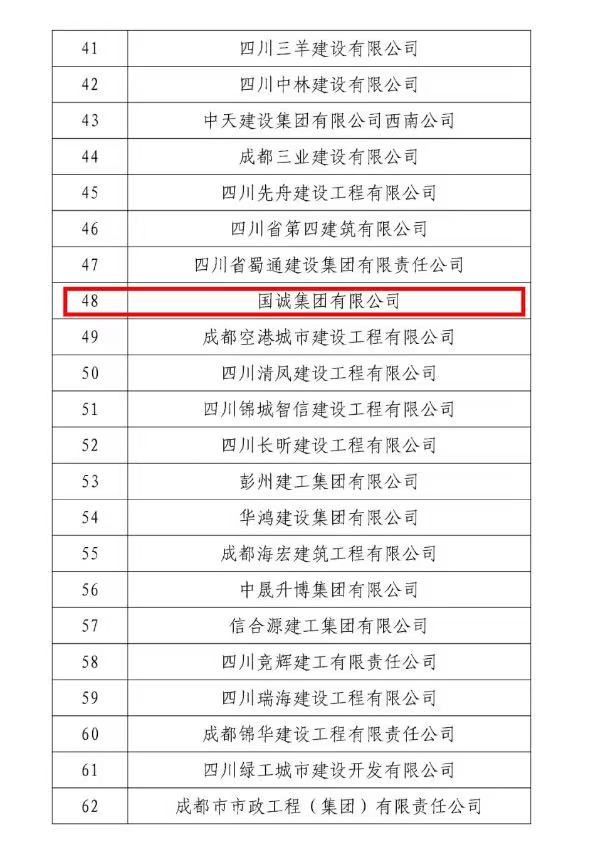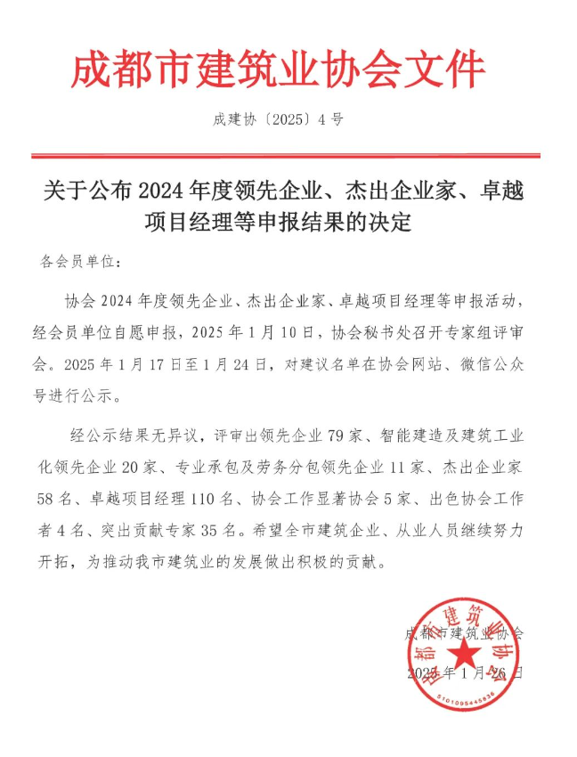 2024年度成都市建筑業(yè)領先企業(yè)”