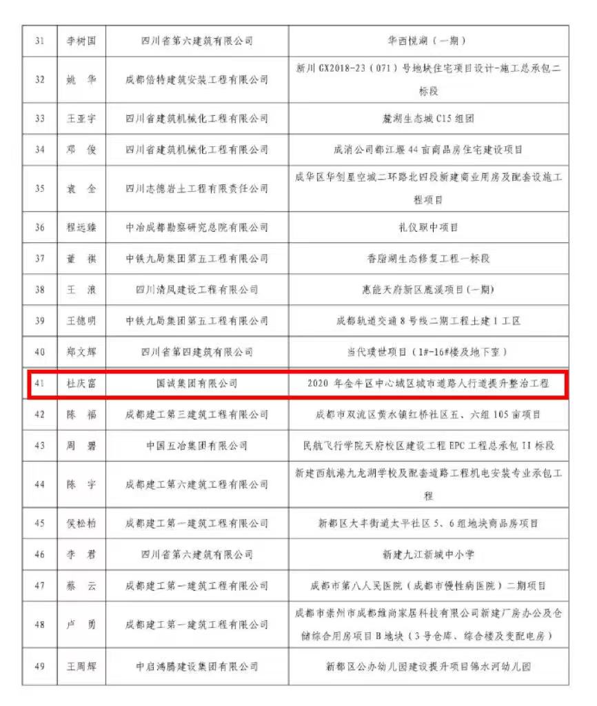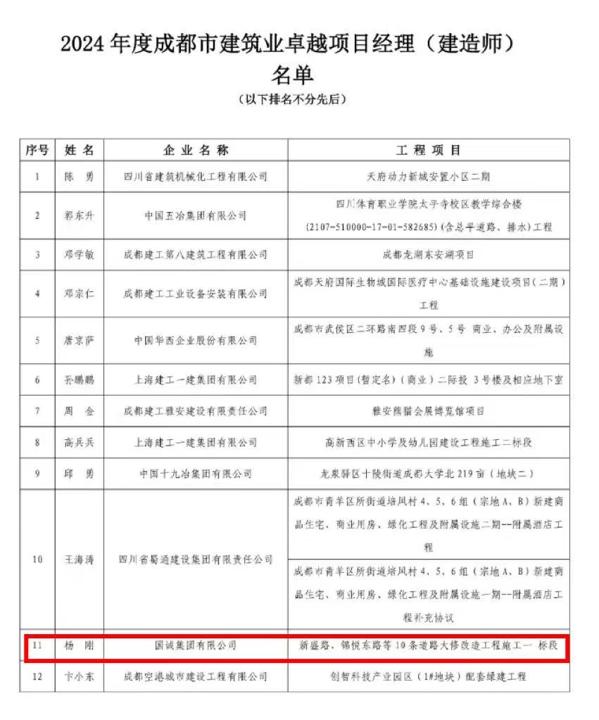 楊剛同志、杜慶富同志被評為“2024年度成都市建筑業(yè)卓越項目經(jīng)理”稱號!