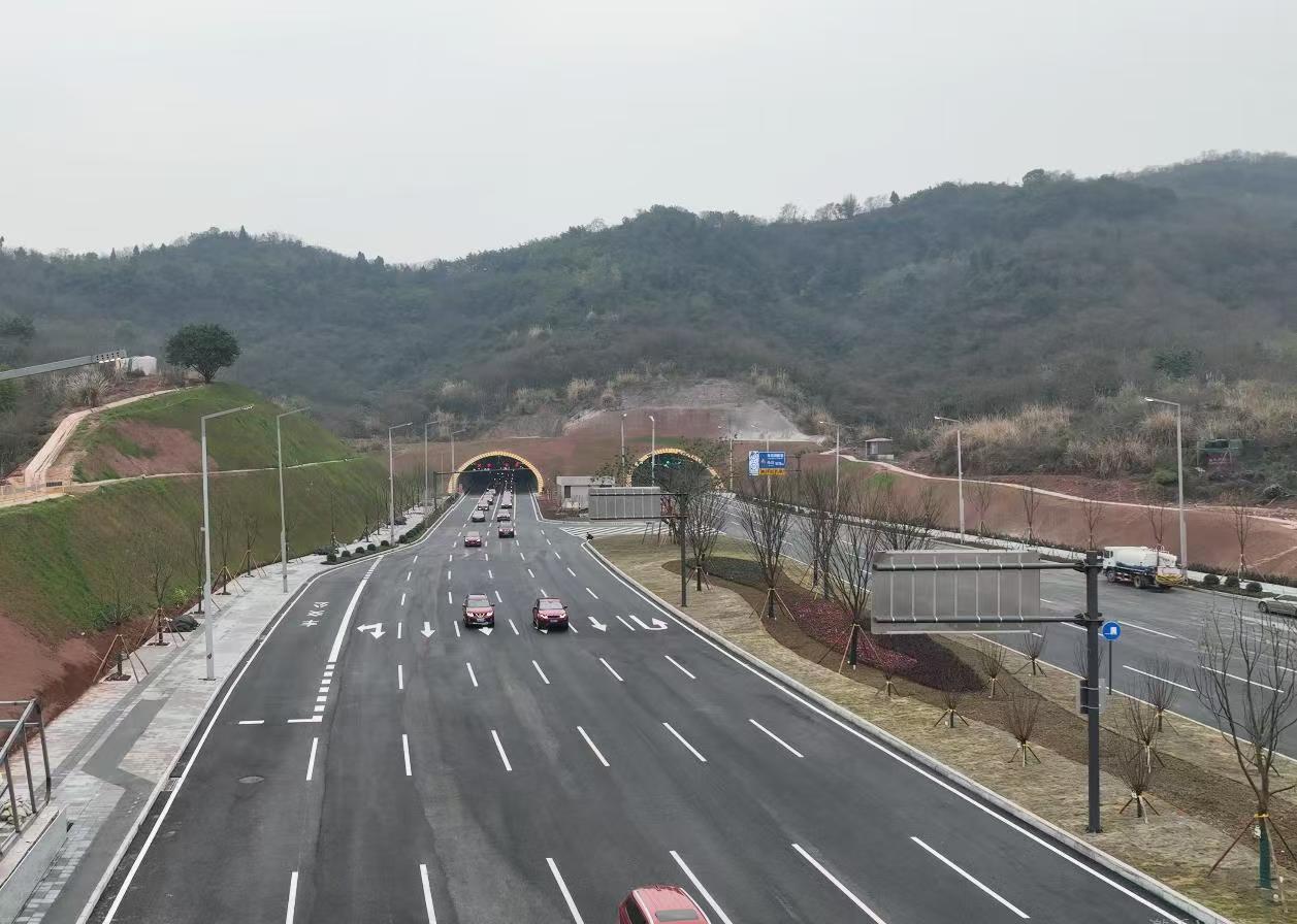 作為西部(重慶)科學(xué)城核心區(qū)"六橫六縱"骨架網(wǎng)的關(guān)鍵組成部分,高騰大道(三期)工程承載著貫通區(qū)域交通、助力科學(xué)城發(fā)展的重要使命。項目位于科學(xué)城金鳳含谷規(guī)劃區(qū)內(nèi),向東穿越寨山坪余脈后銜接高騰大道二期,全長1520米,其中包含西部(重慶)科學(xué)城首個暗挖完工的雙向八車道隧道——鳳棲湖隧道,隧道單洞最長達(dá)1078米,標(biāo)準(zhǔn)路幅寬度44米,設(shè)計行車速度60千米/小時,總投資達(dá)4.4億元,是集團(tuán)公司在復(fù)雜市政工程領(lǐng)域的里程碑式項目。工程于2023年8月實(shí)現(xiàn)全線通車,不僅打通了天然山體屏障,更構(gòu)建起金鳳片區(qū)與含谷片區(qū)的快速交通廊道,使兩地往來通行時間縮減15分鐘以上,為金鳳實(shí)驗室等重點(diǎn)科研平臺搭建了東部聯(lián)系的快捷通道,極大提升了科學(xué)城核心區(qū)的交通通達(dá)性。